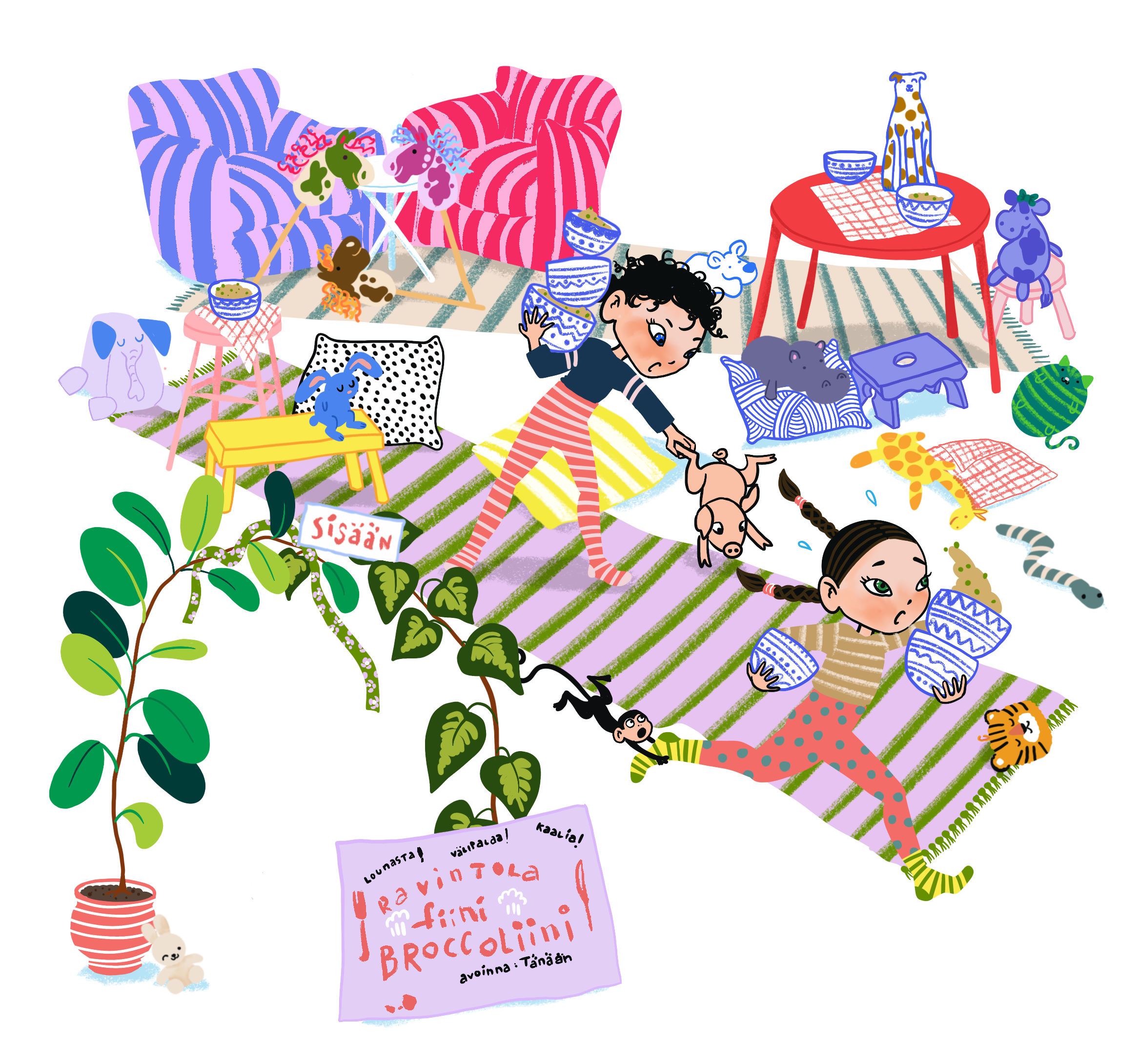Siri ja Siina ryhtyvät leipomaan pikkutaikinaa, mutta harkitsemattomien lisäysten takia taikinaa tulee aivan liikaa. Ei huolta – se on hyvä syy leikkiä ravintolaa! Hetkessä keittiö muuttuu viiden tähden ravintolaksi, ja lastenhuoneesta löytyy monenkirjava seurue vieraiksi.