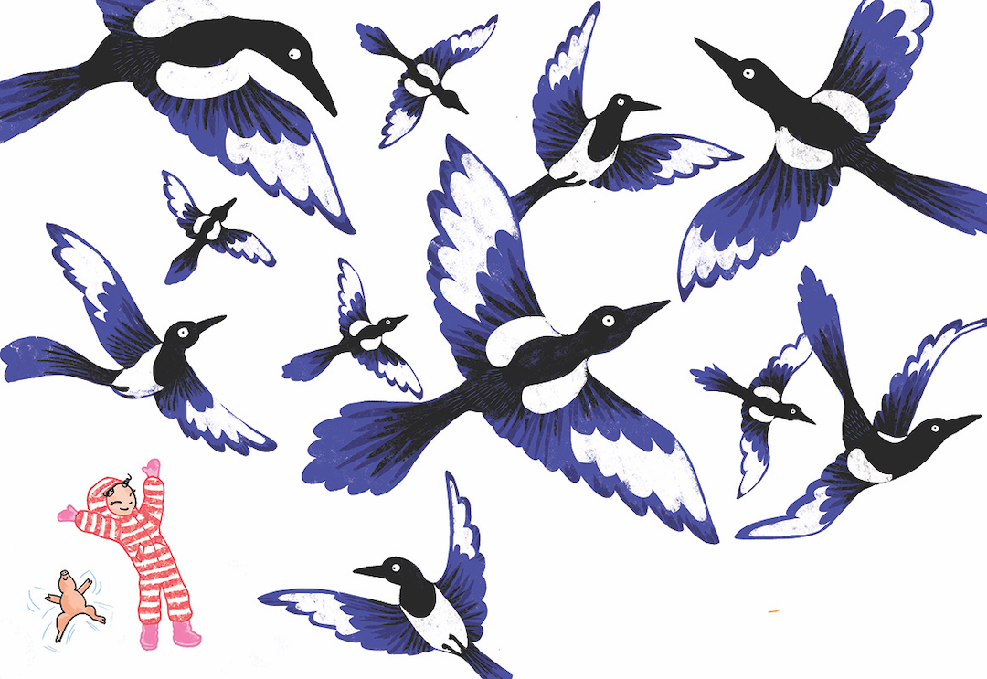 Tässä kuvakirjassa luotetaan lasten kykyyn luoda omat seikkailunsa ilman aikuisten maailman rajoitteita. Joten hätyytä lapset pihalle äläkä droppaa tunnelmaa!
