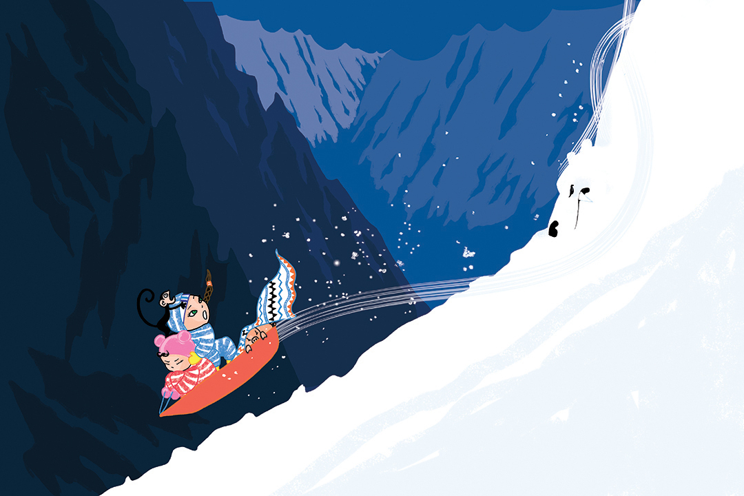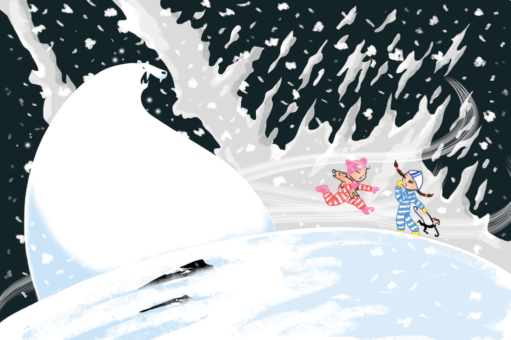 Siri ja Siina eivät taaskaan onnistu leikkimään hillitysti, sillä takapihan kimmeltävät kinokset saavat mielikuvituksen riistäytymään valloilleen. Lumeen peittynyt kotipiha näyttää aivan uudelta maailmalta. Puutarha on muuttunut arktiseksi, hyytäväksi tundraksi, missä ei koskaan tiedä, mitä kinokset piilottelevat. Talvinen päivä etenee lumimajan rakentamisesta pilkkimiseen ja Huippuvuoren vuorenhuiputukseen – ja vääjäämättömään kohtaamiseen jääkarhun kanssa.